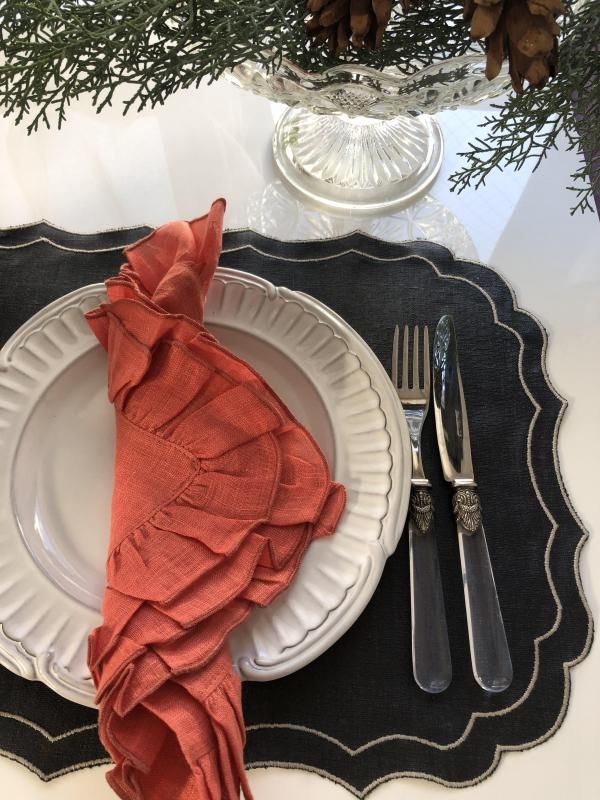 麻100%の生地にオリジナルなコーティング加工を施したプレイスマット。